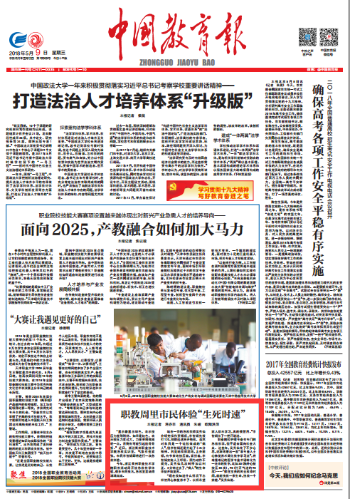《中国教育报》 2018年05月09日 头版 报道 本报记者 蒋亦丰 通讯员 朱峻 欧阳洪萍