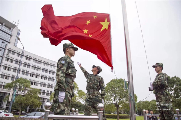 在部队时,王浩就曾负责各种旗帜的升降保养,“当国旗在部队校场升起时,在场的军人都会行庄重的举手礼。而在学校里升旗时,同学们通常会停下脚步,行注目礼。”每次升旗,王浩的目光都会追随着国旗,并在心中默唱国歌,“一看到那飘扬在天空的五星红旗,我就想起前辈们的付出。”