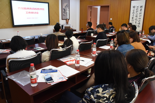 10月12日,首届衢州市高校图书馆工作研讨会在衢职院图书馆举行。来自全市高校馆和超星公司的代表共20余人参加了会议,衢职院图书馆副馆长夏武祥主持会议。