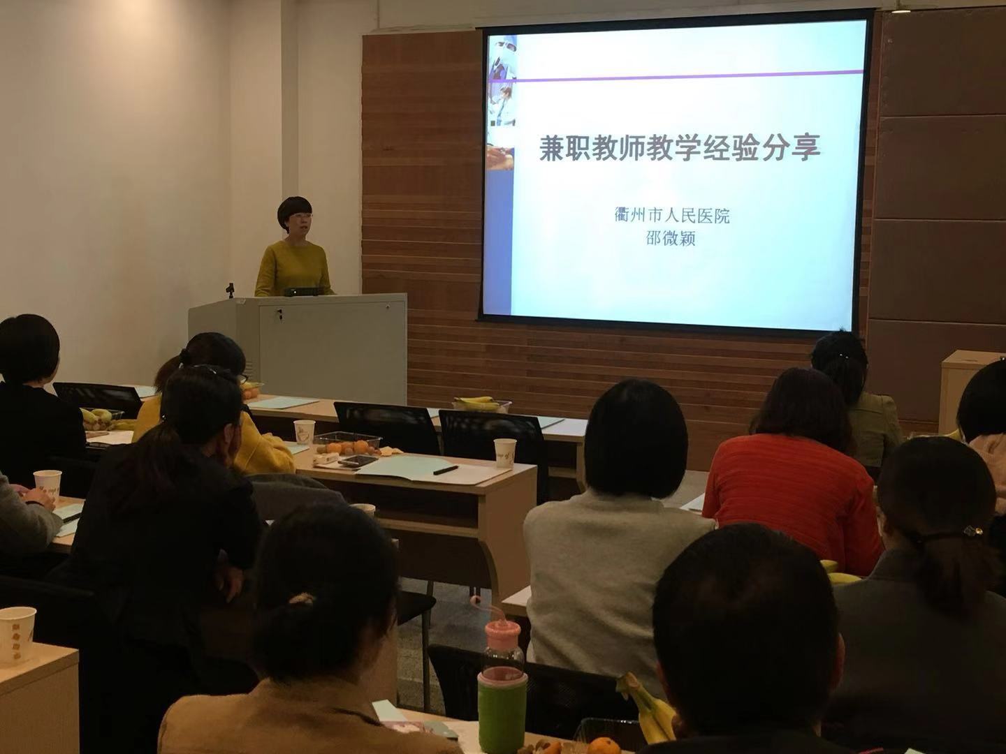 徐春岳老师作为专职教师代表与大家分享了护理专业课教学经验。从备好一堂课、不断改进教学方法和习惯培养素养三方面,娓娓道来,引起在场教师的强烈共鸣。兼职教师代表邵微颖老师分享了自己对教学工作的感悟。邵老师表示,对教学工作、对学生的热爱是上好一堂课的基础;不断摸索、总结教学技巧是提升教学水平的途径;与专职教师、专家交流是提升教学水平的捷径。邵老师精彩生动的发言让与会老师获益匪浅。