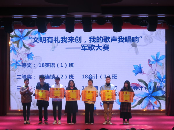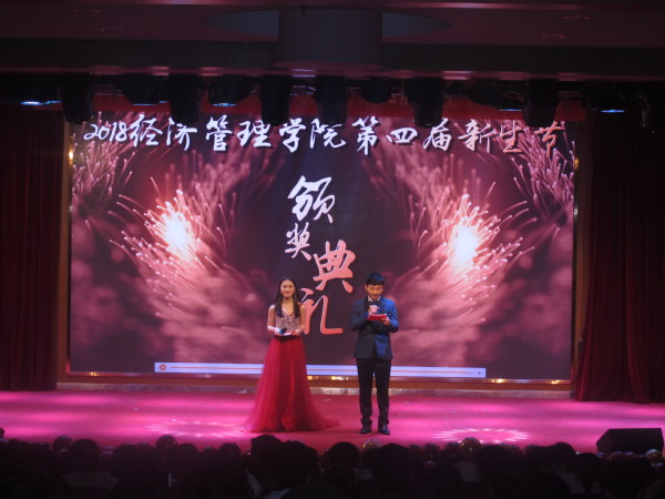 经济管理学院第四届新生节颁奖典礼在晚会第三章“盈盈·秋撷”篇开启,经济管理学院分团委学生会主席赵伊露上台对本次新生节活动进行总结,受邀嘉宾和现场老师共同为获奖班级颁奖。