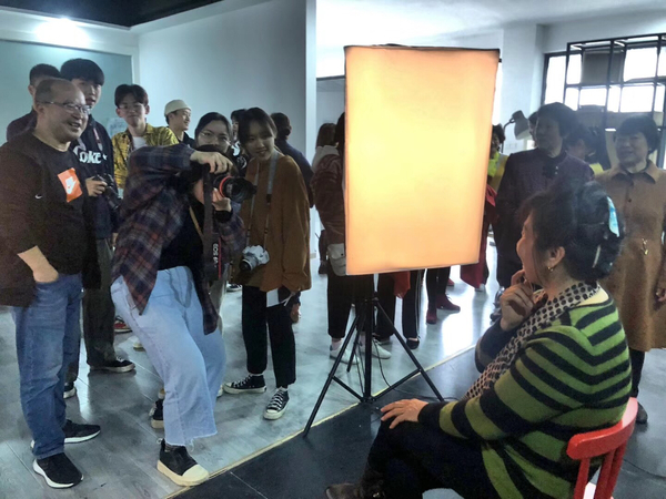 本次活动分两个场地进行:白云社区服务点和校内服务点。上午8时许,白云社区工作人员带领20位居民前来我校,在艺术设计学院教师的带领下,社区居民分别参观了学校、艺术楼展厅、部分工作室。随后,在摄影摄像工作室教师的指导下,18级学生们分15个小组、按批次圆满完成了大家的外景和棚内拍摄。同时,艺术设计学院志愿服务师生在白云社区为三对行动不便的老人完成了本次拍摄。此次活动,旨在发挥艺术设计学院专业特长,为社区居民记录当下的瞬间,为大家的记忆增添一抹别样的“春”色。