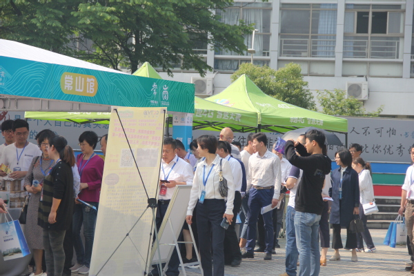 本届工商模拟大赛最大的特色在于青春助力乡村振兴。为进一步发挥衢职学生在乡村振兴中的作用,为本地行业、企业提供“衢职智慧”,衢职职业技术学院经济管理学院与衢州市农业农村局、衢州市团市委合作,于今年3月—5月举行以“青春助力 乡村振兴”为主题的创新创业调研实践活动。通过政校企三方联动,以调研报告、创业论坛、农产品展示会等形式引导学校师生“爱农学农 研农助农”。当日工模现场是整个活动的实体展销阶段。共邀请本市柯城区、衢江区、龙游县、常山县、开化县、江山市六个县(市、区)农创客项目和知名农业企业等共计38个,按照地域及特色分成七大馆区进行展示展销。