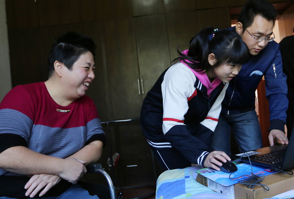 这位文静漂亮的女孩叫蓝微,一边上学一边照顾瘫痪的妈妈,她一直用积极的态度面对人生,先后获得“浙江省立志成才优秀学生”“全国孝亲敬老之星”等荣誉称号。