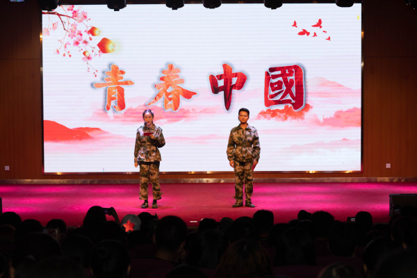 影片过后,由19艺术设计1班同学们带来第一个诗歌朗诵节目《中国,我的中国》,晚会节目一个接一个地呈现在师生眼前。18级学生郭许优,结合晚会主题给师生们上了一节《主席之语,青年之路》微团课;19设计2班王琴和黄运宝同学诗歌朗诵《青春中国》,气势磅礴、抑扬顿挫,激起同学们的爱国热情,更是将晚会的气氛推向了高潮。本次晚会节目内容丰富,除了歌曲、舞蹈外,更有爱国主题诗歌朗诵、微团课以及爱国知识问答等内容。随着最后一首《国家》,晚会落下帷幕。