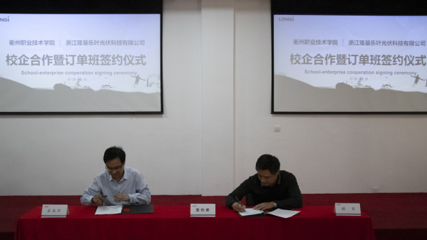 签约仪式上,校党委委员、副校长傅元勋和浙江隆基乐叶光伏科技有限公司副董事长叶志卿代表双方签订校企合作协议。我校合作发展处、信息工程学院和浙江隆基乐叶光伏科技有限公司相关负责人等参加签约仪式。