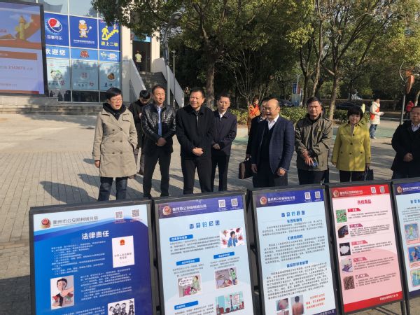 省禁毒办督察组一行六人对我校禁毒预防教育开展情况进行了督导,检查了我校禁毒教育的宣传阵地——禁毒橱窗以及禁毒的大型宣传喷绘和展板,还对柯城禁毒大队在我校设立的禁毒宣传摊点工作进行了观摩,我校禁毒各项工作得到督察组的一致好评。