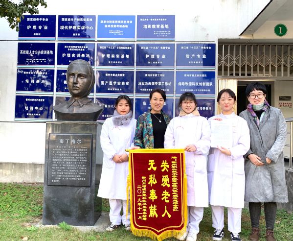 近日,柯城区兴华社区为衢职院医学院天使之爱志愿服务团队送来了锦旗和感谢信,感谢衢职院志愿服务团队师生们,从2005年至今共计8000余名志愿者,发扬南丁格尔精神,给予社区空巢老人身心上的关爱。志愿者们以“不是亲人,胜似亲人”的宗旨,14年来充分发挥专业特长,为老人测血压,关心老人生活起居,并组织老人们开展有益身心的活动,丰富了空巢老人们的日常生活和精神世界。