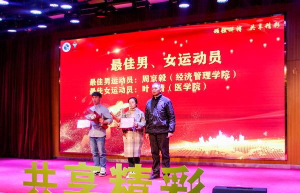 大会评出严志仙、马晓菲、赵小龙、吕迎尚为优秀教练员,丁佳琦等28人为优秀运动员,经济管理学院周京毅、医学院周倩分别被评为最佳男/女运动员。医学院、经济管理学院、公共体育部获得突出贡献奖,校女子排球队被评为优秀团队奖。