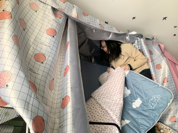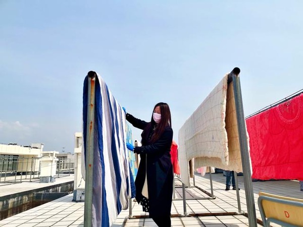 今天一早,春姑娘展开了笑脸,太阳,红红的光束射过来,像母亲的手温暖的抚摸着大地。老师们在各个战区的指导下,一趟趟地往返寝室和楼顶的晾晒场地,搬运被子、抱枕、玩偶,铺开、拍打、整理,为同学们晒被子......