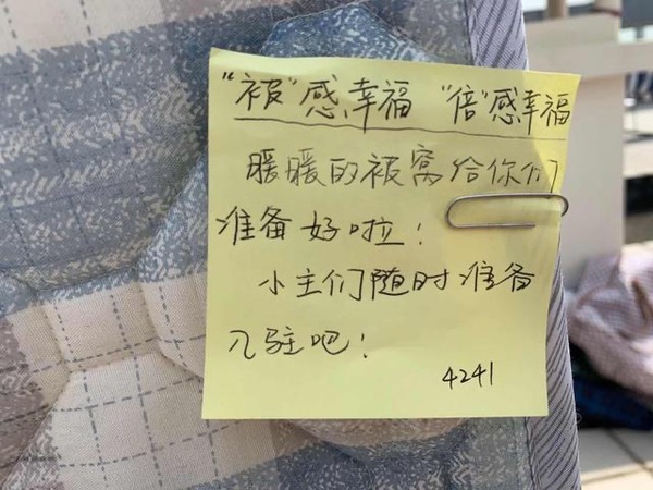 大家还写下了许多温暖的问候:“暖暖的被窝给你们准备好啦,小主们随时入驻吧~”“自己选择的路要坚持走下去,路上的艰辛无需抱怨”……