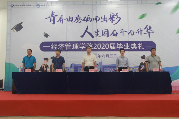 鉴于此,经济管理学院于6月5日下午在体育中心一楼举行以“青春由磨砺而出彩,人生因奋斗而升华”的2020届毕业典礼。校党委委员副校长傅元勋、经济管理学院领导班子成员出席,全体辅导员、毕业班班主任和所有毕业生参加。本次典礼由经管党总支书记斯彬彬主持。