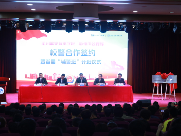 10月28日,我校校警合作签约暨首届“辅警班”开班仪式在一号报告厅举行。衢州市副市长、公安局长王顺大,我校党委书记徐须实,校长吕延文,市公安局党委委员、副局长汪史唯出席,仪式由我校副校长巫少龙主持。