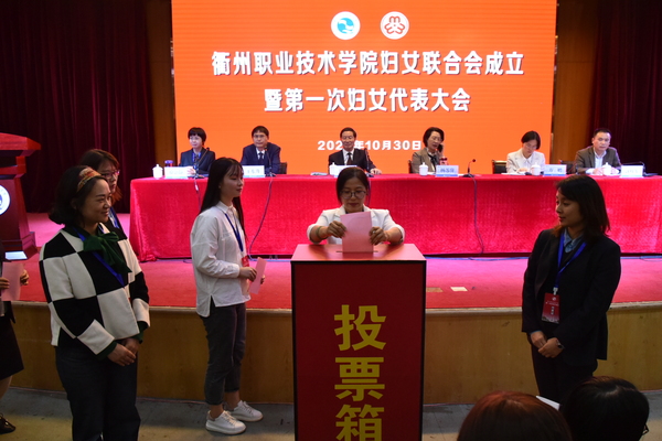 为深入贯彻习近平新时代中国特色社会主义思想和党的十九大精神,认真落实中央、省委党的群团工作会议精神,结合我校实际,10月30日,我校成立妇女联合会暨第一次妇女代表大会在图书馆一号报告厅召开。本届妇女代表101名,其中女教工代表89名,女学生代表12名。我校党委书记徐须实,衢州市妇联党组书记、主席杨苏萍,衢州市妇联党组成员、副主席方娉,校党委委员、组织部长徐浪静,校工会常务副主席江红军出席,会议由校党委副书记王东升主持。