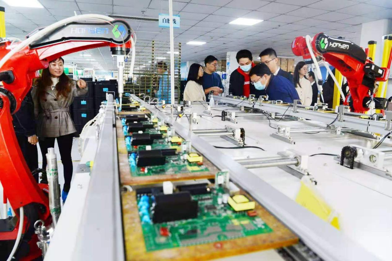 在浙江龙游新西帝电子有限公司,技术服务团队了解了公司发展情况,双方就生产线数字化改造进行了探讨。