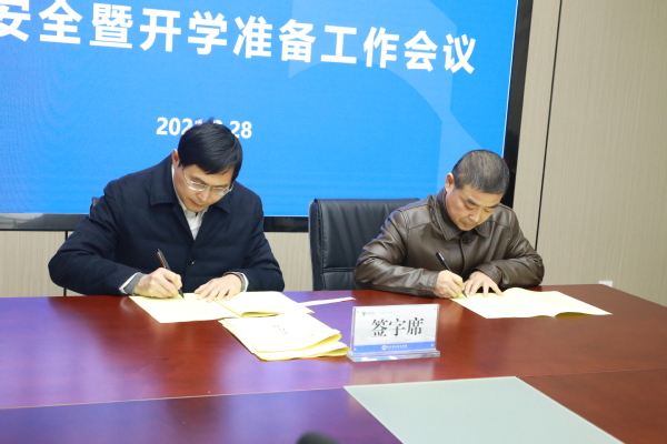 会上,校领导与相关部门负责人和二级学院书记签订了2021年校园安全与稳定工作责任书。