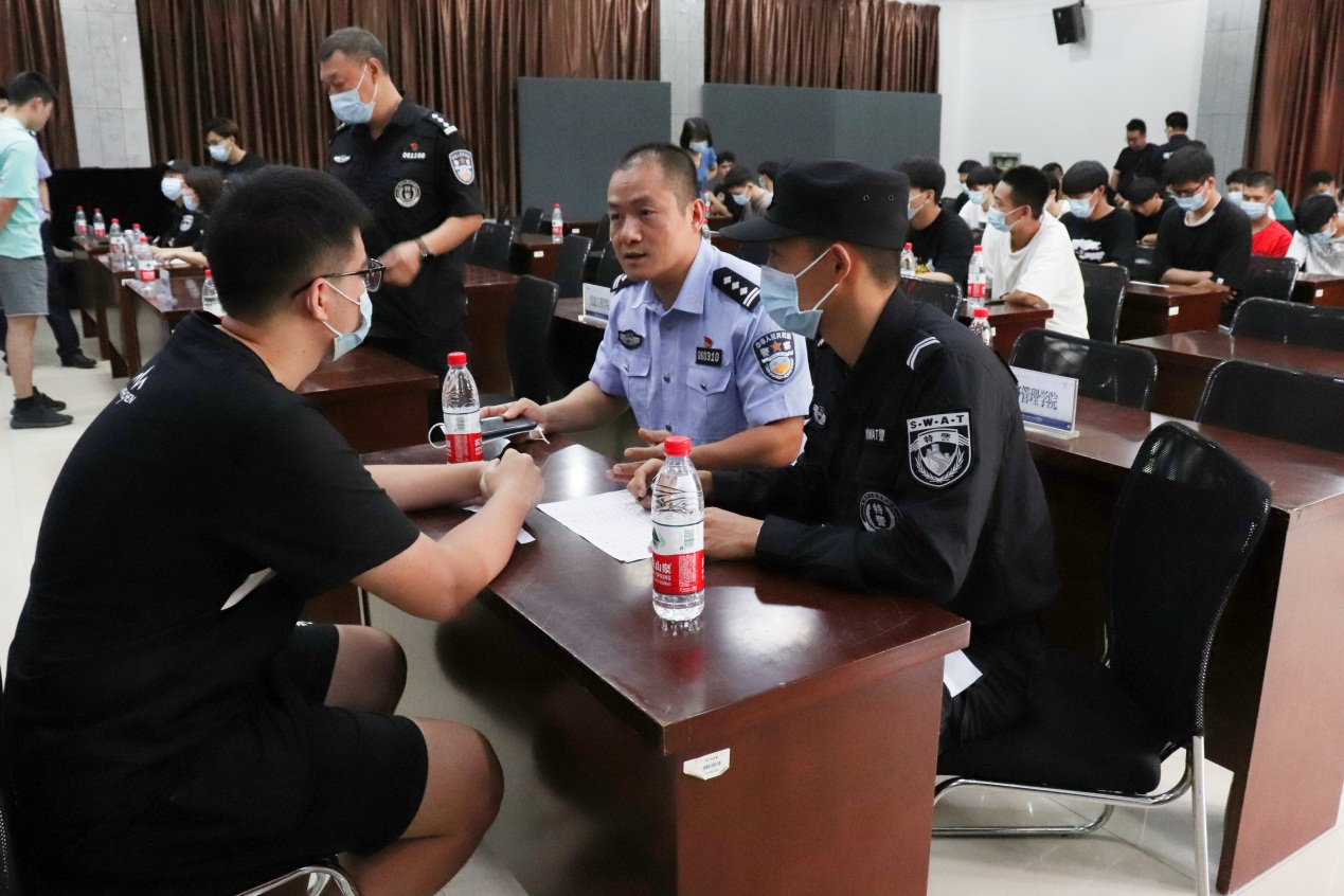 宣传动员大会结束后,有意向报名“辅警班”的同学参加了市公安局组织的面试。据统计,共有47位同学通过面试,并配合工作人员做好量体制衣工作。