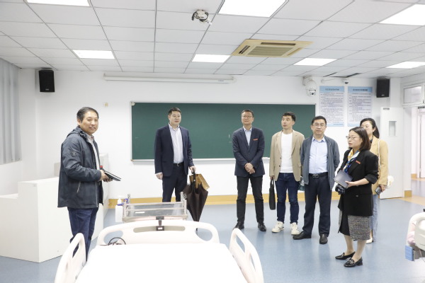 屠建根一行走访了医护康养实训中心、四省边际大健康公共实训中心,详细了解了我校医护康养、护理、助产、中药学、针灸等专业群建设、实训基地建设、服务地方发展等情况。