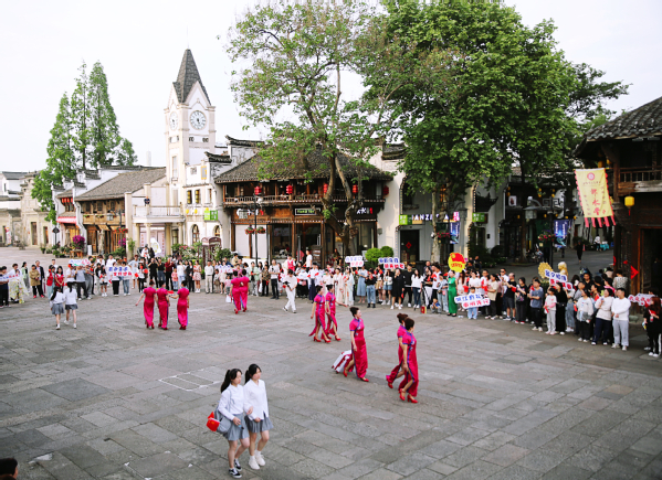 5月3日傍晚,来衢州旅游的李先生一家在衢州市水亭门历史文化街区欣赏了一场文化快闪。李先生感慨:“最近衢州很火,网上能搜到很多衢州小吃,我们一家趁着五一假期来衢州打卡,没想到衢州的文化活动也如此丰富。这些穿旗袍的老奶奶气质真好。”