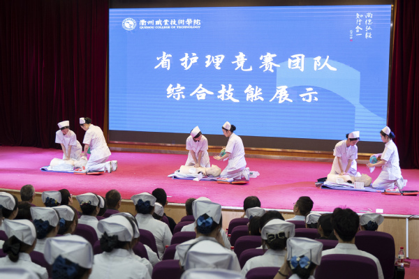 优秀的护士不仅需要丰富的理论知识,勇于奉献、敢于担当的工作态度,更少不了熟练的实操技能加持,省护理竞赛团队学生带来精彩的技能展示。