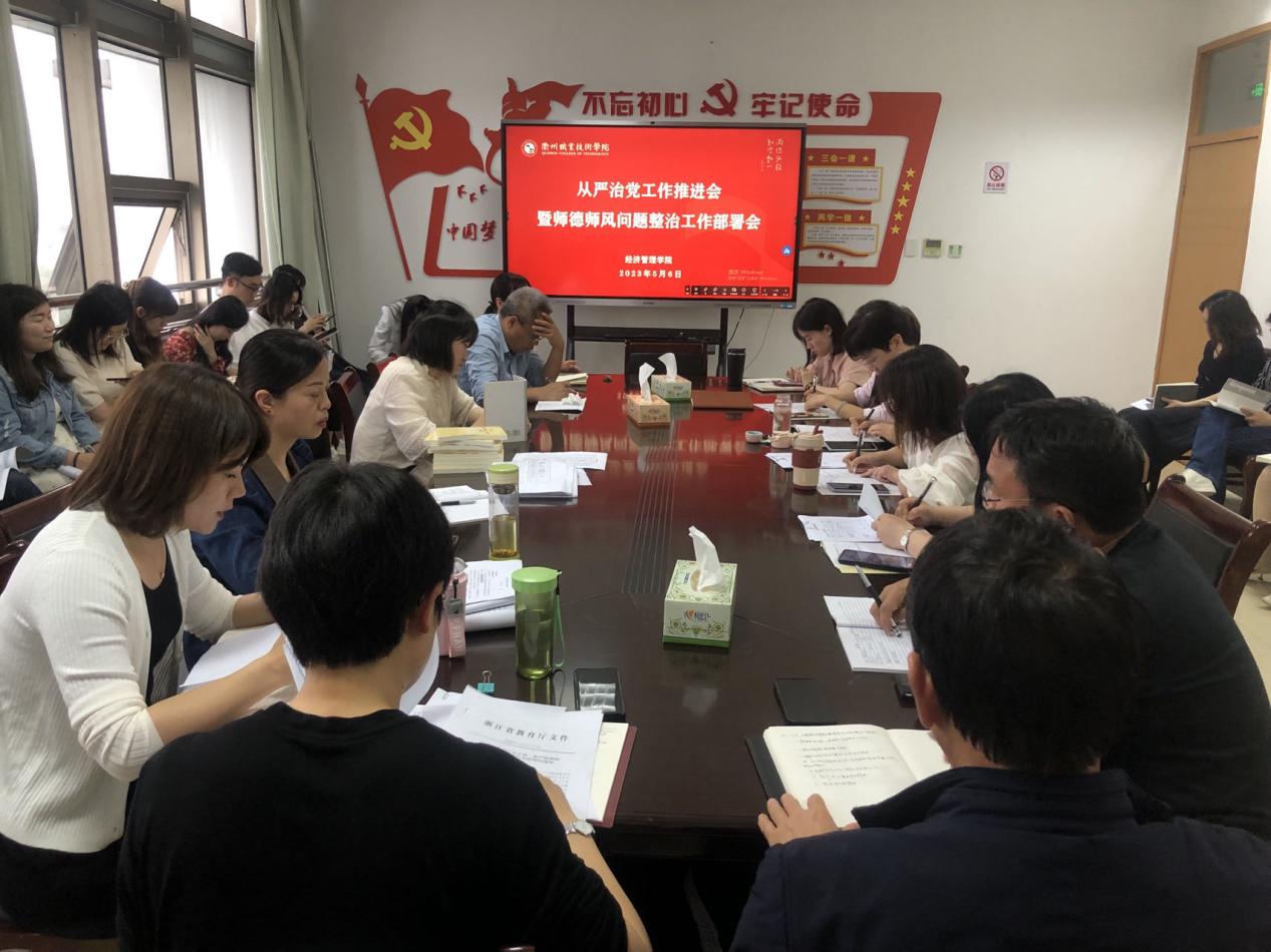 5月6日下午,经济管理学院在729会议室召开全面从严治党工作推进会暨师德师风问题整治工作部署会。会议由经济管理学院党总支书记斯彬彬主持,学院领导班子和全体教职工参加。