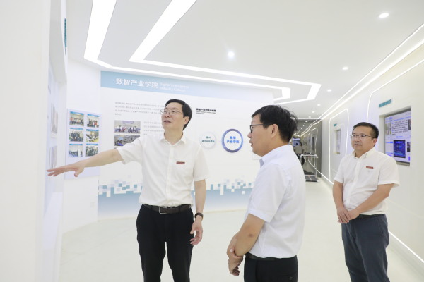 李建辉参观了校史馆、信息工程学院、医学院、艺术设计学院、经济管理学院、华友新材料学院、机电工程学院,详细了解我校发展历程、高水平专业群建设、实训基地建设、服务地方发展等情况。