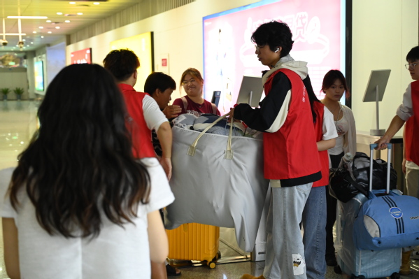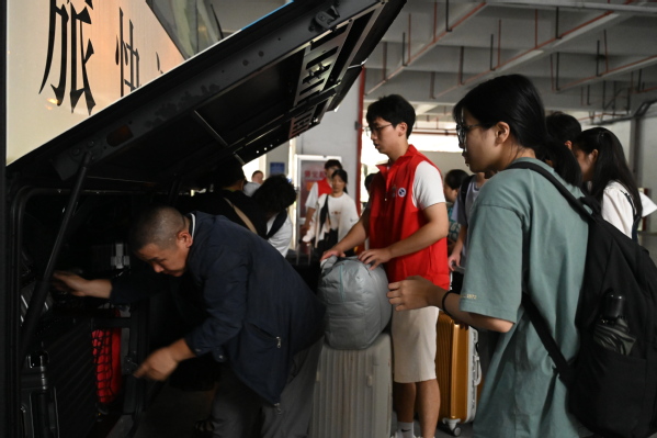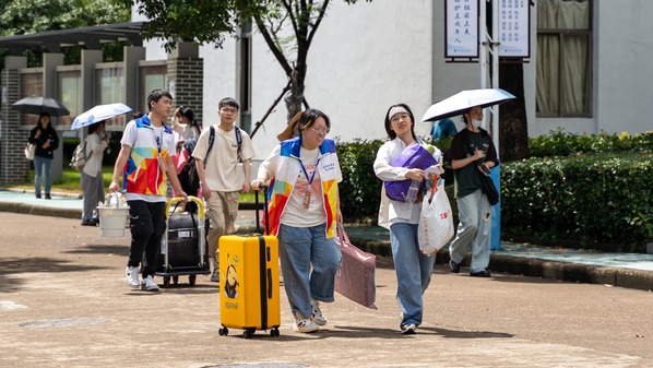 他们耐心地为新生解答各类入学问题,坚守在各个新生报到点提供热情服务。
