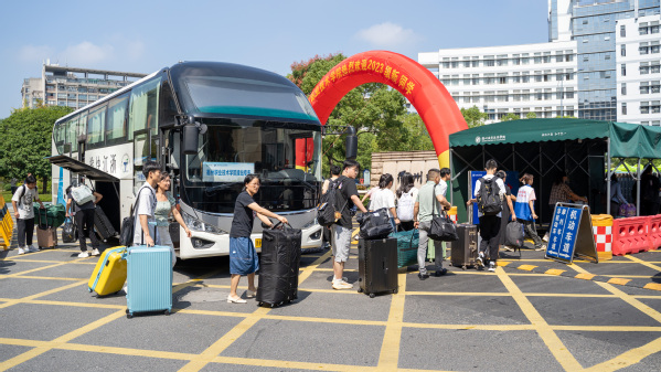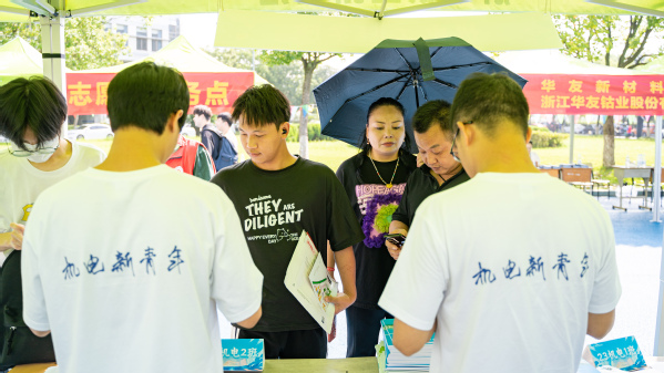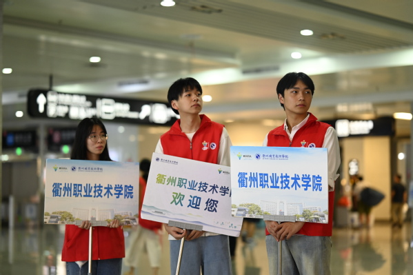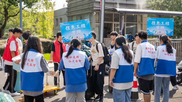 火车站、校内各报到点处处可见衢职院迎新工作人员与志愿者们的身影。