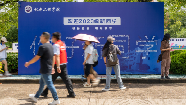 用“新”装扮的校园格外美丽整洁,新生们在家长的陪同下进入校园,学校工作人员、学生志愿者以及各学院的老师们以饱满的热情为2023级新同学办理入学手续。