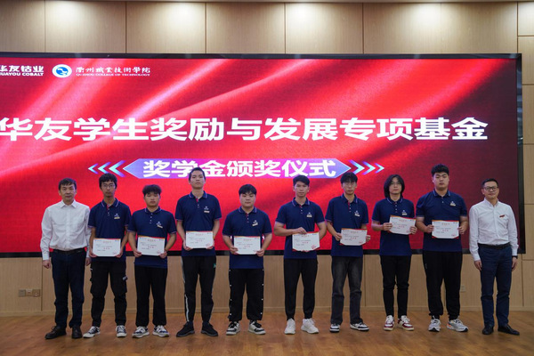 姚水洪和李谦共同为华友新材料学院专项奖助学金获得者进行颁奖。