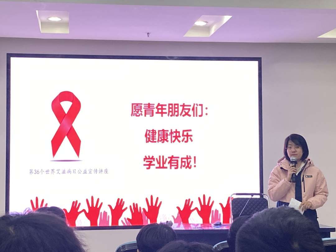 每年的12月1日为世界艾滋病日。为了提高学生群体对艾滋病相关知识的了解,做到有效预防艾滋病,保障学生身心健康,2023年11月29日晚,机电工程学院联合后勤保卫处邀请柯城区妇保院党支部委员、副院长王蓉来校做艾滋病知识及预防宣讲。