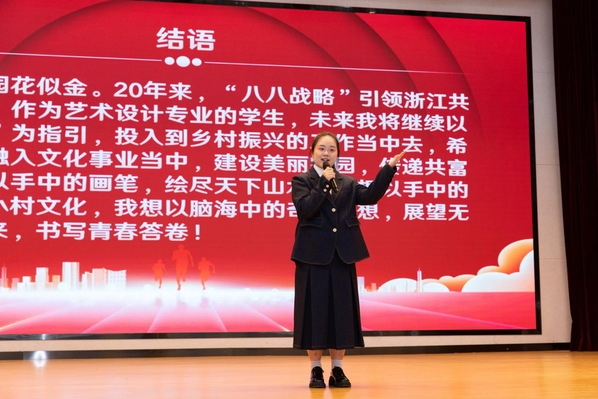 8090新时代理论宣讲团成员丁思仪作《提笔书卷浙江案 二十载来唱发展》宣讲