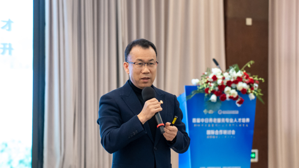 中福协专业人才队伍建设分会副会长兼秘书长、长沙民政职业技术学院医学院院长黄岩松以《健康养老高质量发展背景下,中日合作培养社区居家养老专业人才的思考》为题作专题报告。