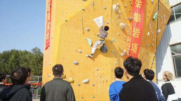 近日,我校第十六届体育运动会攀岩比赛顺利举行。本次比赛由校攀岩队承办,分为甲组(普通组)和乙组(体育组)两个大类,产生难度赛、速度赛、男子组、女子组共8个项目组,吸引了我校七个学院的六十余名同学参赛。