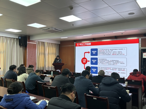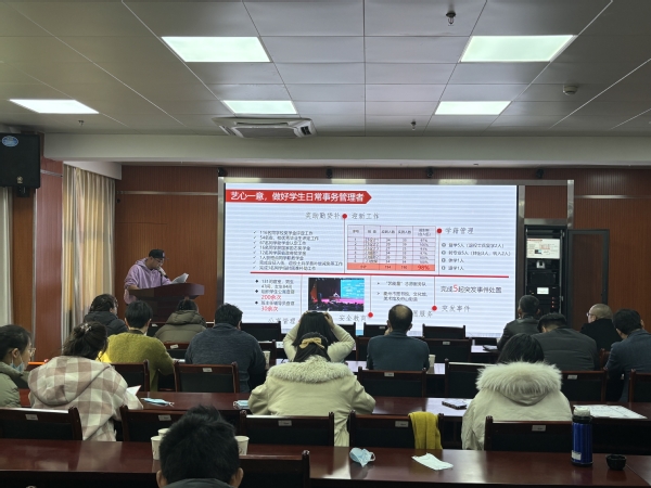1月3日,学工部在机电工程学院会议室举行全校辅导员述职大会,参加会议有各二级学院书记、副书记以及学校组织部、宣传部等相关部门领导。