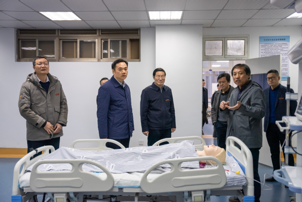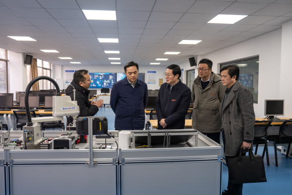 黄亮一行走访了我校共富学院展厅、工业互联网实训基地、医护康养中心、数字创意设计实训中心、四省边际大健康实训中心,详细了解我校专业建设、服务地方、科技创新、招生考试等方面工作情况。