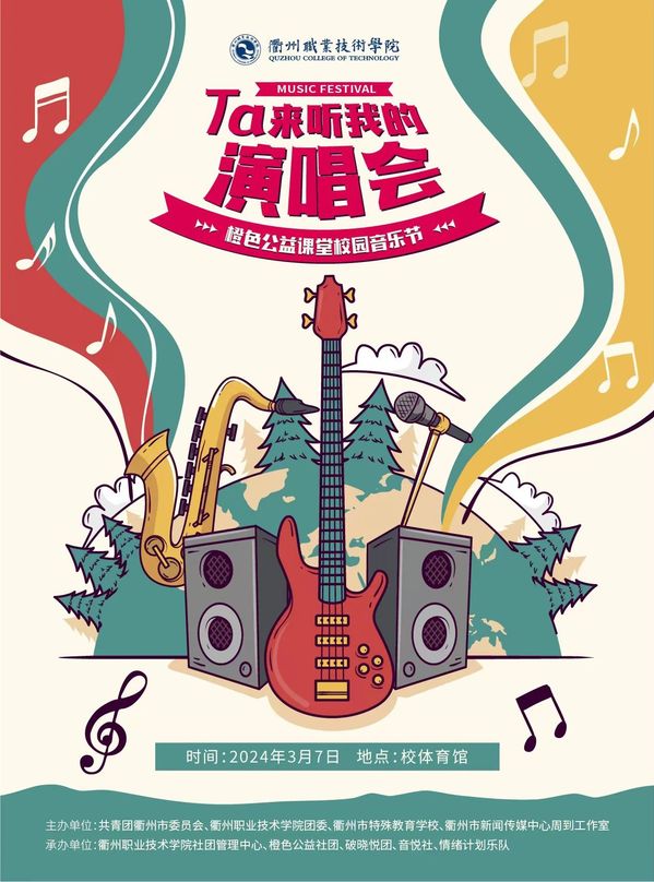 3月7日,特教学校的20余名同学将再次来到衢职院,体验“智慧课堂”“中药课堂”“传统文化社团”等趣味校园课程。3月7日晚18:00,橙色课堂校园音乐节将在学校体育馆举行,欢迎广大师生到场观看。橙色公益,让爱发声!