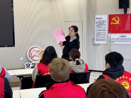 社区工作人员为志愿者们进行入户宣传前的培训。各位志愿者们都在认真学习。
