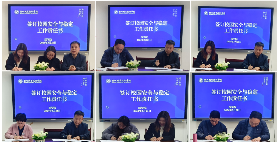 班子其他成员、支部书记和专业主任分别作了交流发言。会上,医学院党政主要领导与分管领导,分管领导与各专业(课程组、实训中心)主任签订了校园安全与稳定工作责任书。