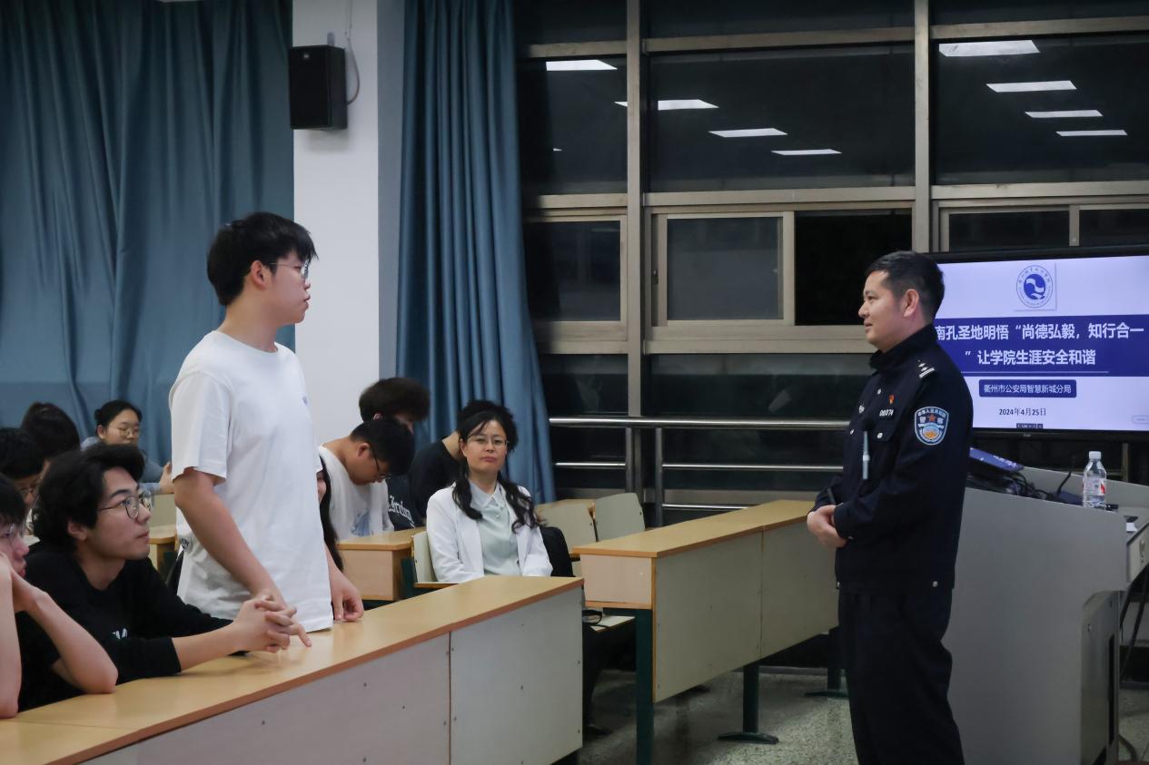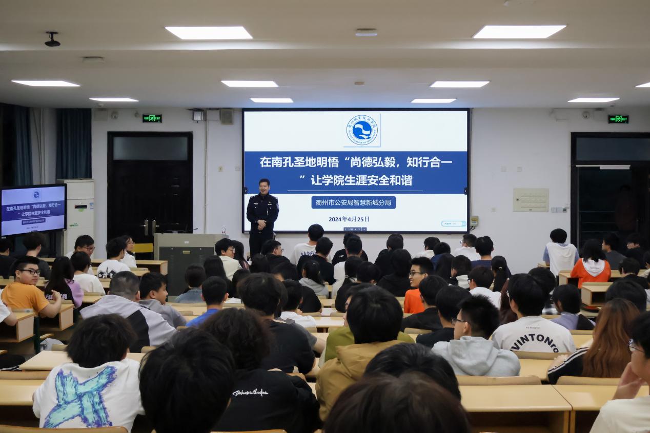为深入推进“平安校园”建设,强化校园危机事件的预防和处理,进一步提升青年大学生安全意识和法治观念,4月25日晚上,信息工程学院联合学校后勤保卫处举办校园安全主题讲座,邀请智慧新城公安分局城西派出所民警周挺走进校园,为近200名信工学子开展安全教育宣传。