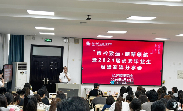 为充分发挥优秀毕业生朋辈引领示范作用,鼓励广大在校同学向优秀榜样学习,营造积极上进、勤学苦练的良好校园氛围,6月12日,经济管理学院在阶西2-1举办了“青衿致远,朋辈领航”暨2024届优秀毕业生经验交流分享会。活动由经济管理学院辅导员韩瑞鑫老师主持,2023级学生积极参加。
