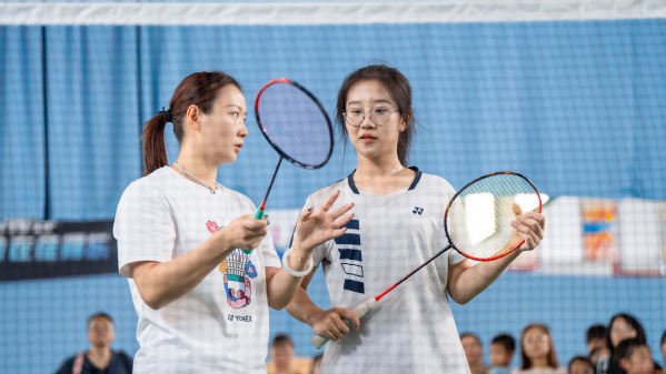 黄雅琼对学校体育教育师资实力雄厚,梯度、结构合理,青年学生朝气蓬勃、阳光向上印象深刻。她表示,学校营造了以体育人的良好氛围,让她倍感亲切,深受感动,希望未来继续增进与学校交流,经常与师生们切磋球技,共同探索人才培养的新路径,推动羽毛球事业高质量发展。