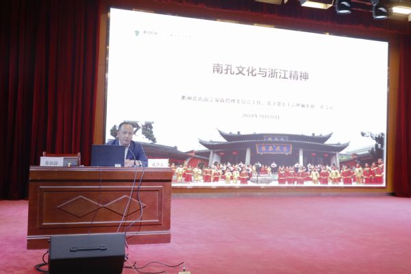 讲座以“当下我们研究和弘扬南孔文化意义何在?”开篇,用详实的史料和生动的孔氏家族历史故事,深入浅出讲解了“自强不息的艰苦创业精神,忠贞不渝的爱国主义精神,谦让和谐的道德人文精神,勤勉肯干的敬业奉献精神,崇学重教的诗礼传家精神,唯实求是的求真务实精神,泗淛同源的南北一家精神,开放包容的变革创新精神”等南孔文化八大精神,既饱含了儒学文化博大精深的精神内涵,又焕发出了与时俱进的时代活力和鲜明的地域特色,是对中国优秀传统文化创造性转化和创新性发展的生动实践,其独特的时代价值,已成为推动衢州当地社会发展和精神文明建设的强大动力。