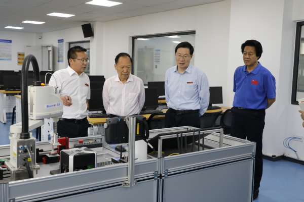徐卸古、朱建华等一行实地走访参观了我校共富学院、工业互联网实训中心、医护康养实训中心、四省边际大健康公共实训中心,详细了解我校在健康管理领域推进产教融合、提升人才培养质量以及服务社会发展的实践与探索。