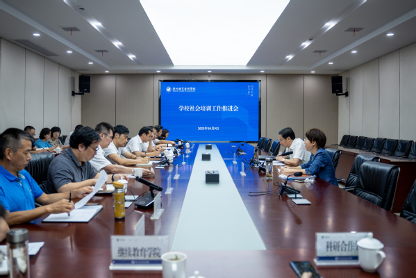 徐须实讲话。他指出,随着今年经济形势与培训模式发生变化,对标对表学校2025年社会培训工作目标,今年学校社会培训工作存在任务重、时间紧的情况,学校社会培训相关工作遇到新的考验,需全校上下群策群力。他要求,各部门认识要再提高。社会培训工作是学校的亮点工作,是服务地方发展成果的一个重要体现,要深刻认识到社会培训是学校推进新校区、新“双高”、新愿景工作的重要抓手,必须从战略高度重视这项工作。任务要再明确。要确定合理任务目标,避免过度拔高指标,各学院和部门以责无旁贷的姿态,找准各自赛道,明确工作职责和重点,加强协作,全力以赴推进,确保任务落实到位。力度要再加大。承训单位要加大组织力度,主要负责人要亲自抓项目开发、组织统筹、考核激励;继续教育学院要加大指导力度,发挥资金、师资库等方面的优势给予相关部门专业指导;科研处要加强向上的对接和数据的统计,做到应统尽统,应统快统。质量要再提升。要以“线上+线下”“理论+实践”的模式,切实将培训工作落实到强化培训人员技能水平的提升上,将培训成果转化为服务地方经济社会发展的实际效能。